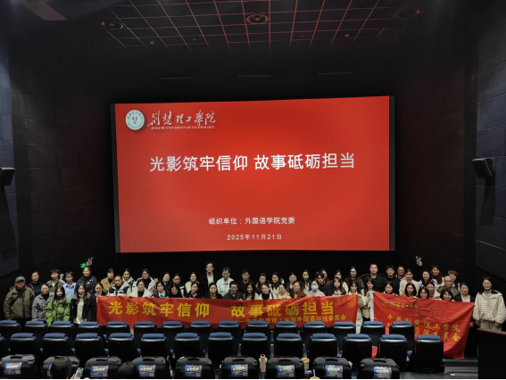 为深入学习贯彻习近平新时代中国特色社会主义思想,持续推动党史学习教育常态化长效化,引导广大党员从红色历史中汲取奋进力量,2025年11月21日,外国语学院党委在银泰城博纳影城组织开展了“光影筑牢信仰 故事砥砺担当”为主题的党日活动。学院党委成员、党员教师及学生党员共60余人参加。